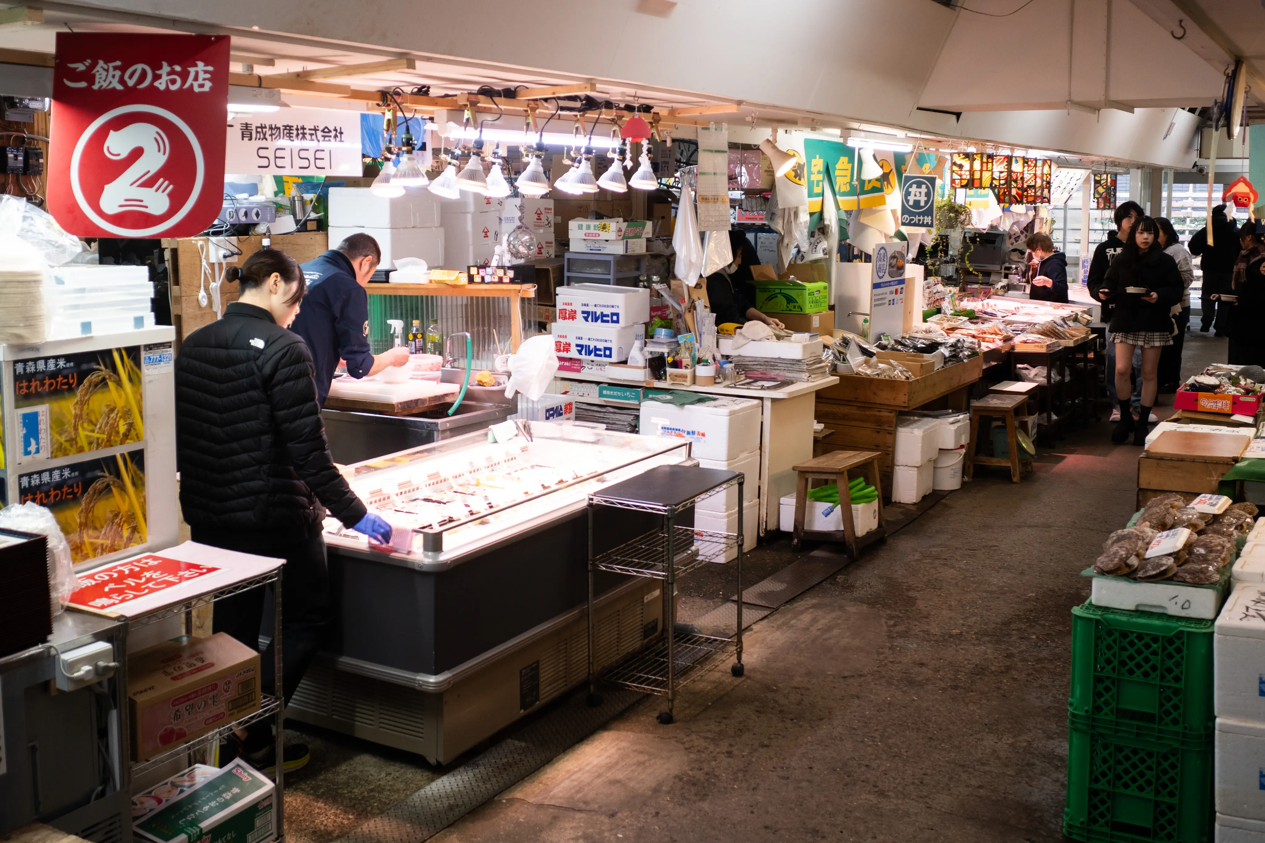 朝、のっけ丼をやっている市場で。私は朝食付きを予約してしまい、かつつい食べ過ぎたため見学のみ。うーん、食べたかった。